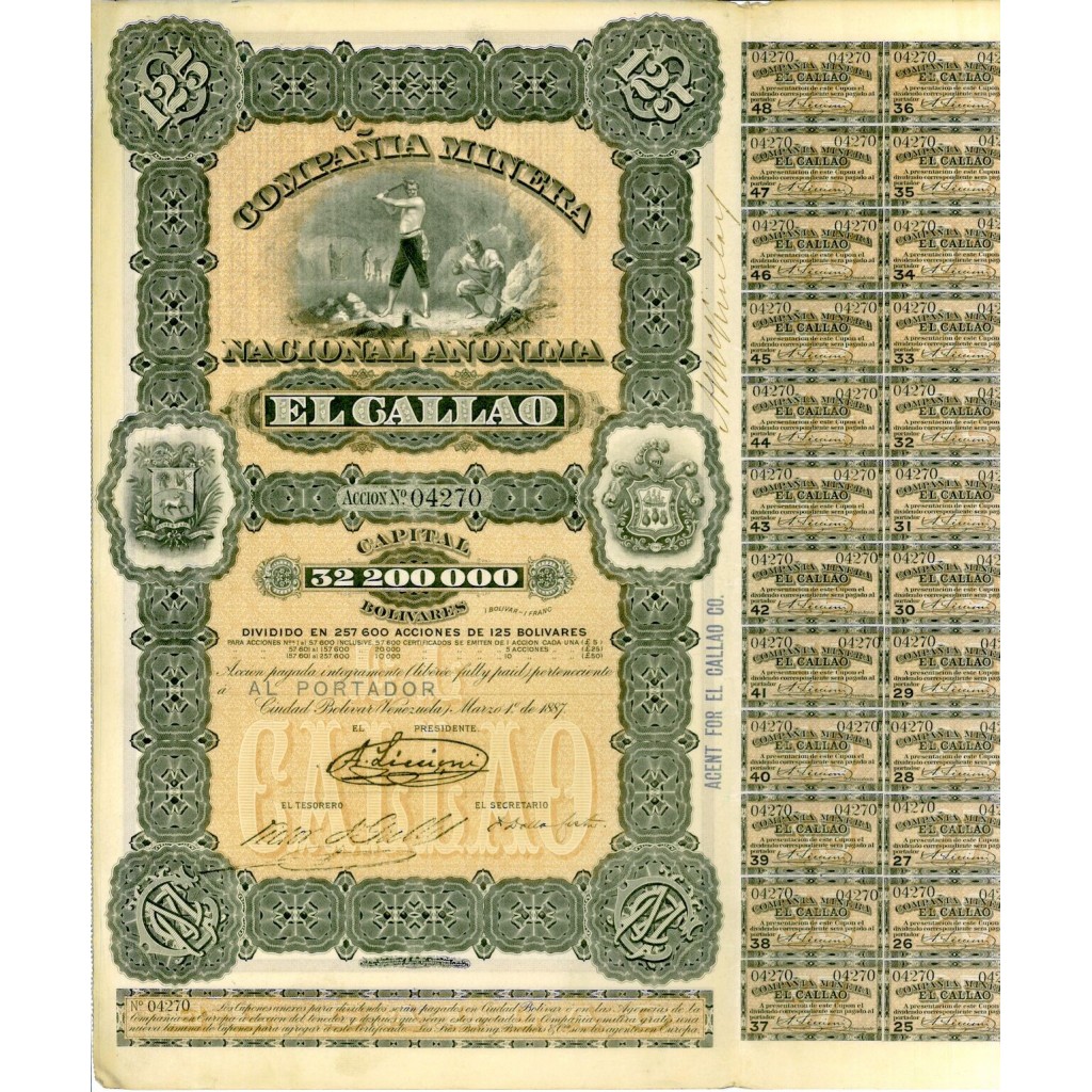 A-62771El callao – comp. Minera nacional anonima-1 Ciudad Bolivar1887125 Bolivares R1 (Più di 5000 pezzi)S1 (da 0 a 25 €)