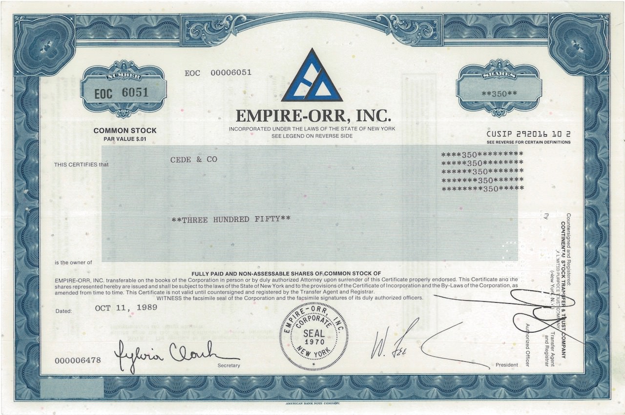 A-18359Empire – Orr, Inc.-1American Bank Note Company - New York1989VariabileR1 (Più di 5000 pezzi)S1 (da 0 a 25 €)