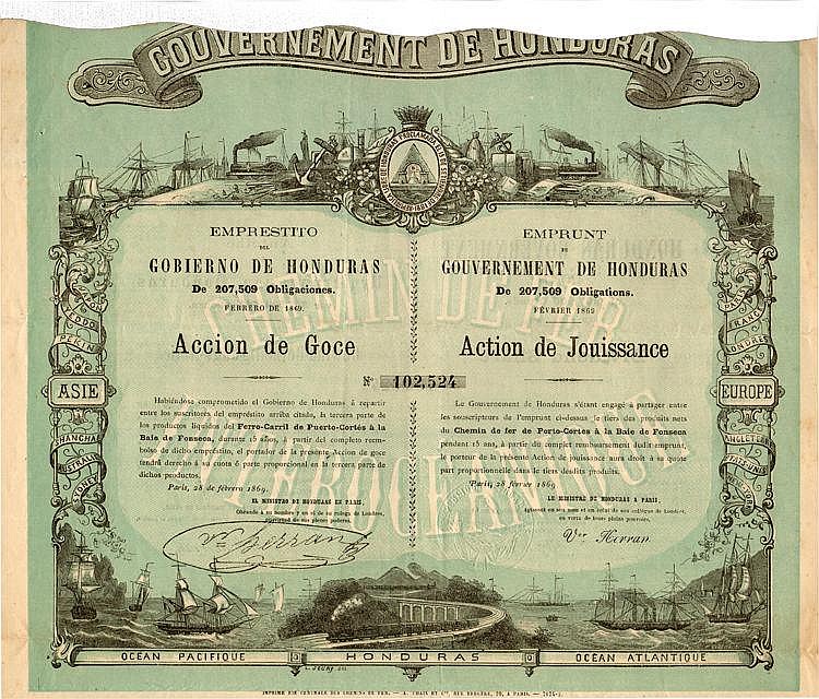Il Governo dell'Honduras si impegnò a dividere -per 15 anni- gli utili con i sottoscrittori del prestito contratto per la costruzione della Ferrovia tra Porto-Cortes e la Baia di Fonseca.