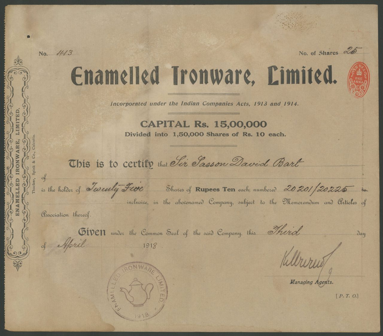 Incorporato sotto gli Indian Companies Acts 1913 e 1914.