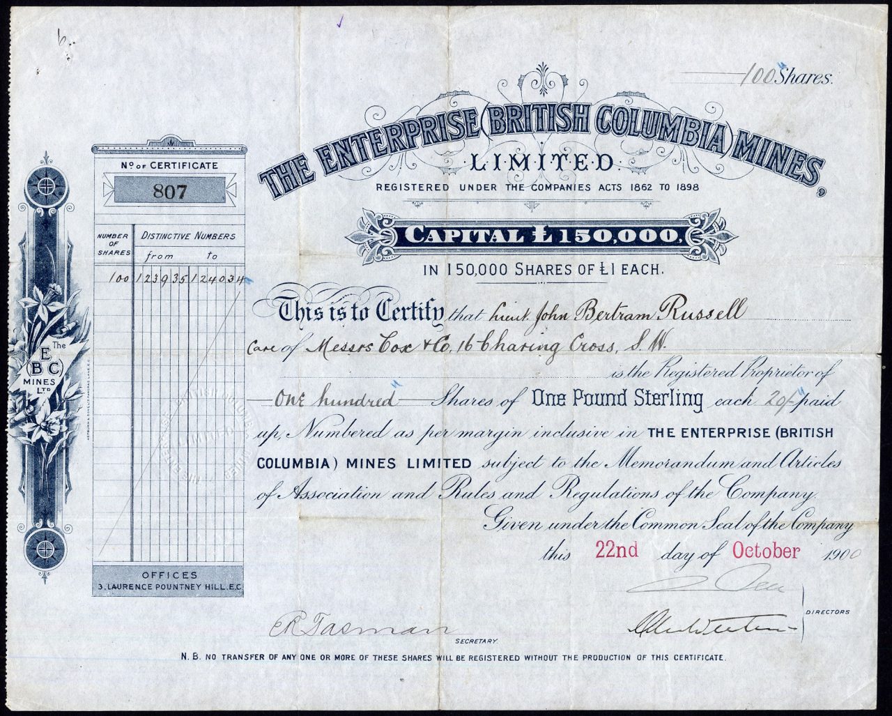 Capitale £ 150.000 in azioni di £ 1.