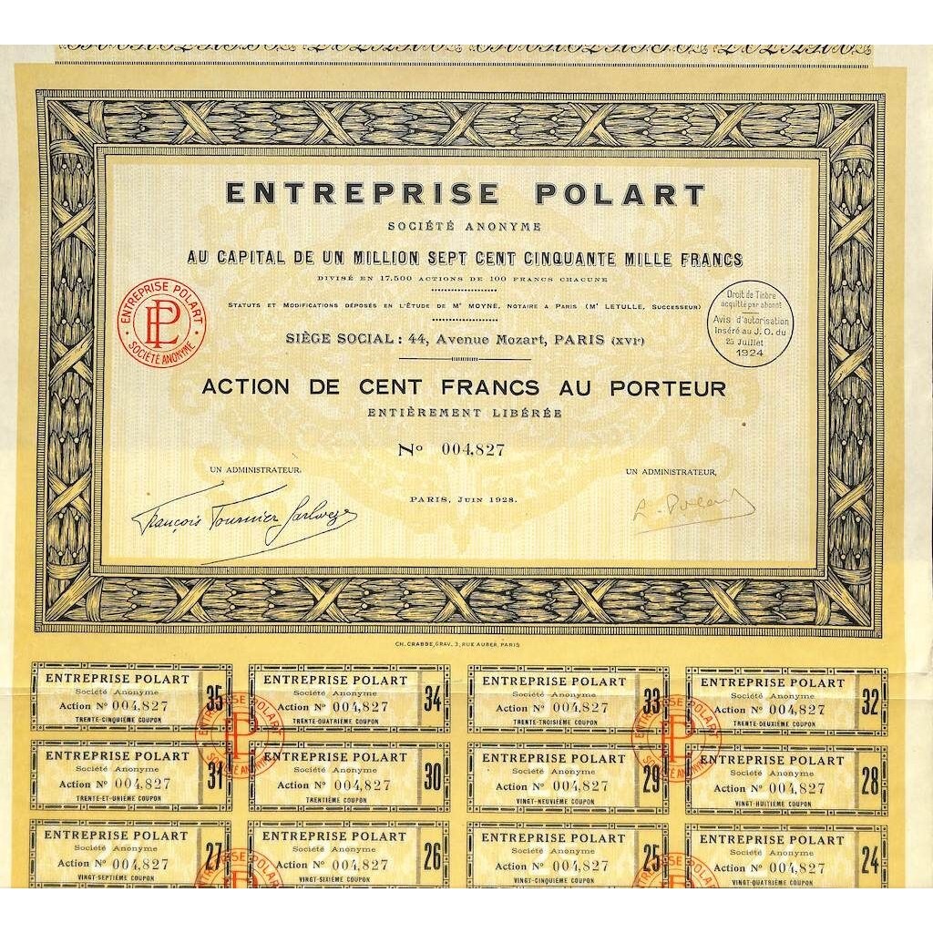 A-51262Entreprise polart-1 Parigi1928100 FranchiR1 (Più di 5000 pezzi)S1 (da 0 a 25 €)