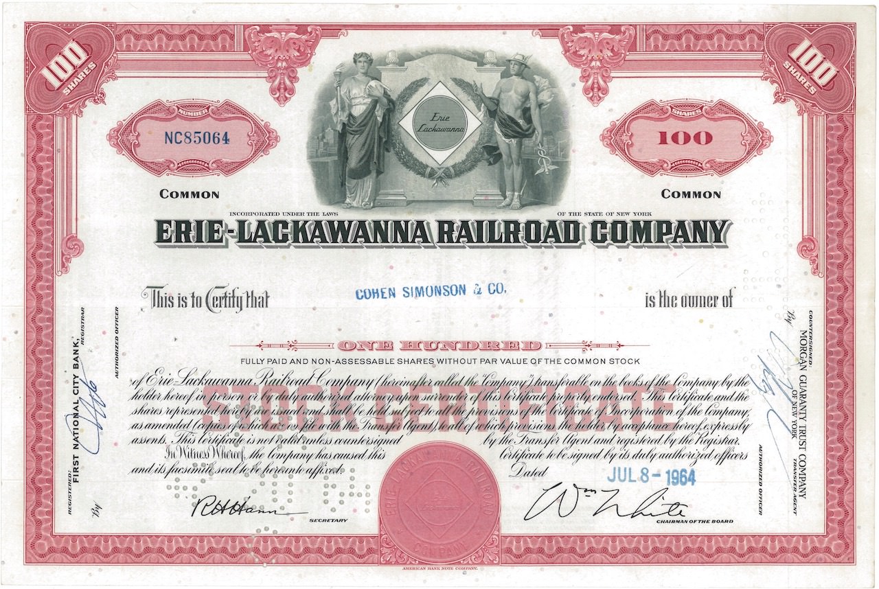 A-18375Erie – Lackawanna Railroad Company-1American Bank Note Company - New York1964100 azioniR1 (Più di 5000 pezzi)S1 (da 0 a 25 €)