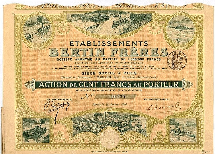 A-56245Etablissements Bertin Frères-1Parigi19071 azione di fondazione al portatore di 100 FF--