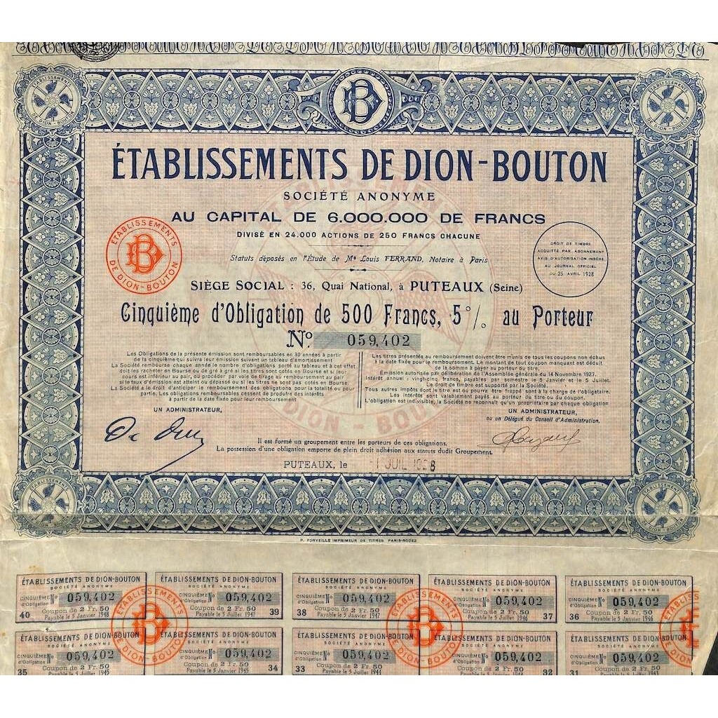 A-51271Etablissements de dion-bouton-1 Puteaux1928500 FranchiR1 (Più di 5000 pezzi)S1 (da 0 a 25 €)