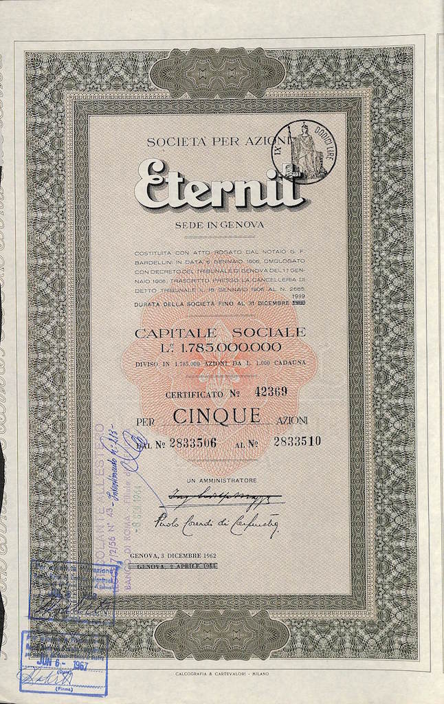 Negli anni sessanta, ricerche mostrarono come la polvere di amianto, generata dall’usura dei tetti e usata come materiale di fondo per i selciati, provoca asbestosi e una grave forma di cancro, il mesotelioma pleurico.Eternit e Fibronit continuarono tuttavia a produrre manufatti sino al 1986, con drammatiche conseguenze per la salute degli operai.