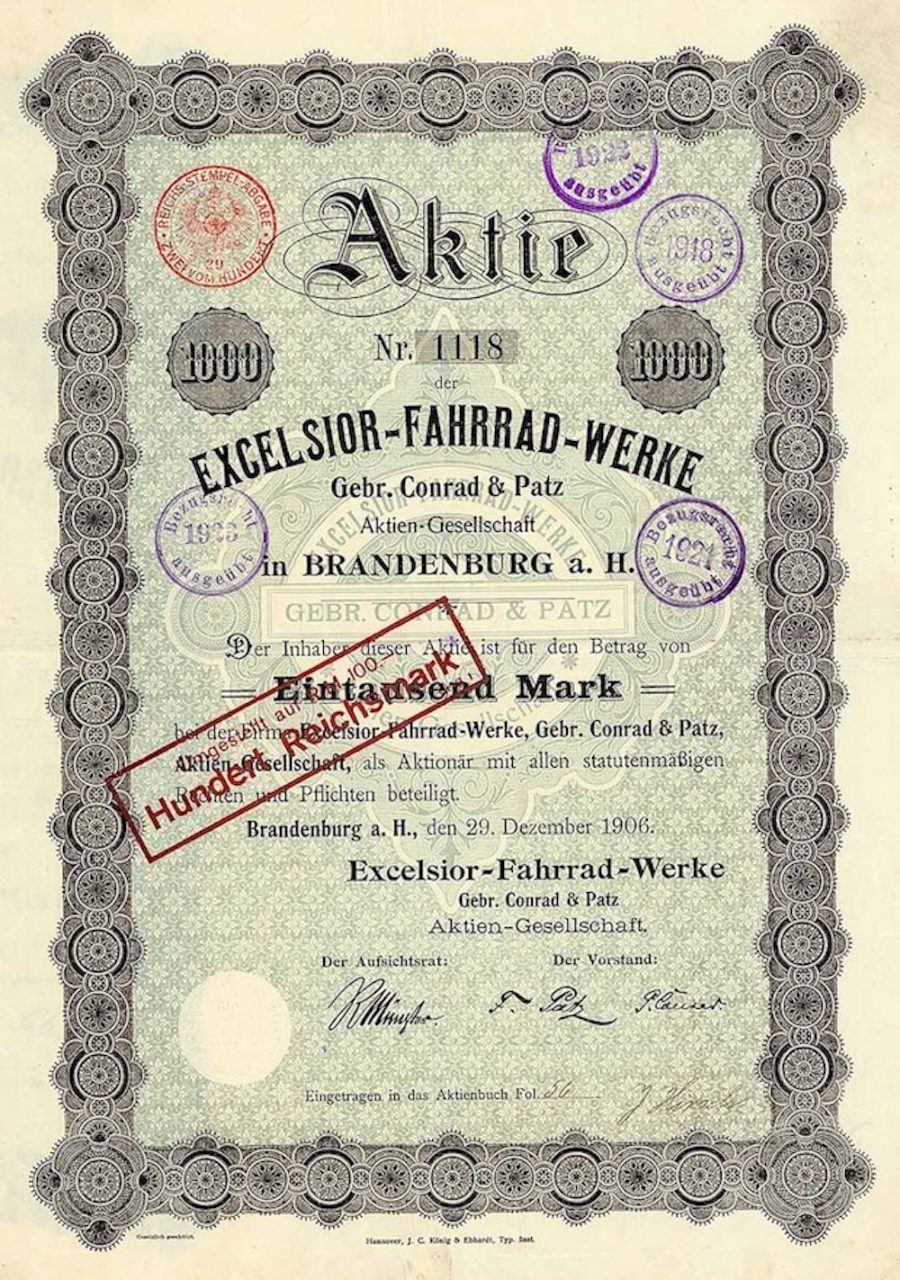 Fondata nel 1906. La fabbrica in Brandenburger Neustadt (Wilhelmsdorfer Landstrasse 43) era all’epoca uno dei maggiori produttori di biciclette in Germania e venivano prodotti anche pezzi di ricambio per l’industria automobilistica. Sono stati impiegati oltre 1.400 lavoratori e dipendenti pubblici. Dopo perdite sostenute, la produzione fu interrotta nel 1932, dopo di che la società quotata a Berlino fu chiusa.