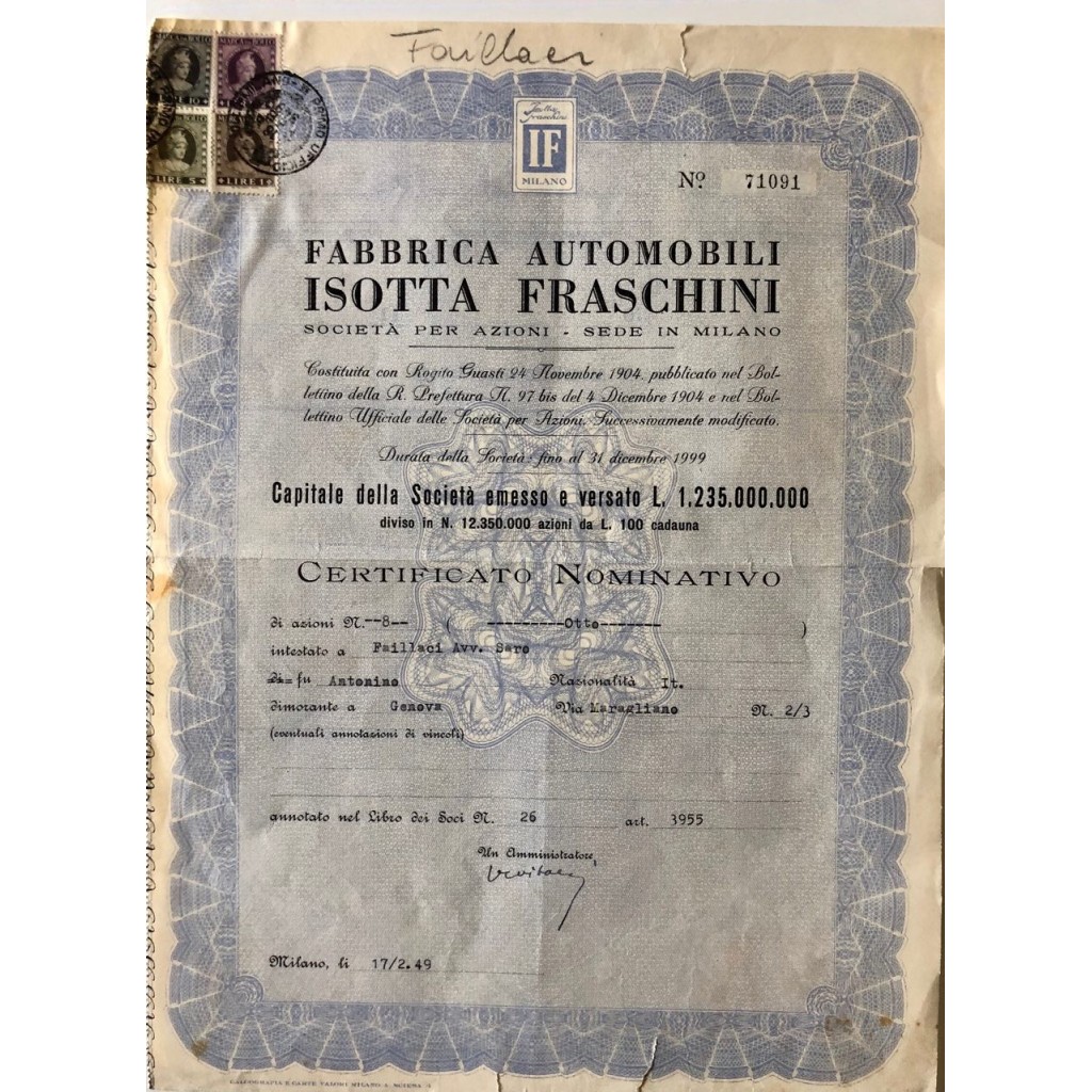 La Isotta Fraschini è stata una casa automobilistica italiana, attiva dal 1900 al 1949, particolarmente nota per la produzione di autovetture tra le più lussuose e prestigiose nella storia dell’automobile.