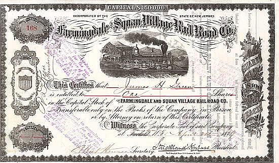 Fondata nel 1867. Ferrovia molto piccola, lunga appena nove miglia a sud-est di Camden, N.J. Fusa con Freehold & Jamesburg Agricultural RR nel 1879. Fino ad allora erano stati emessi solo circa 150 certificati azionari.