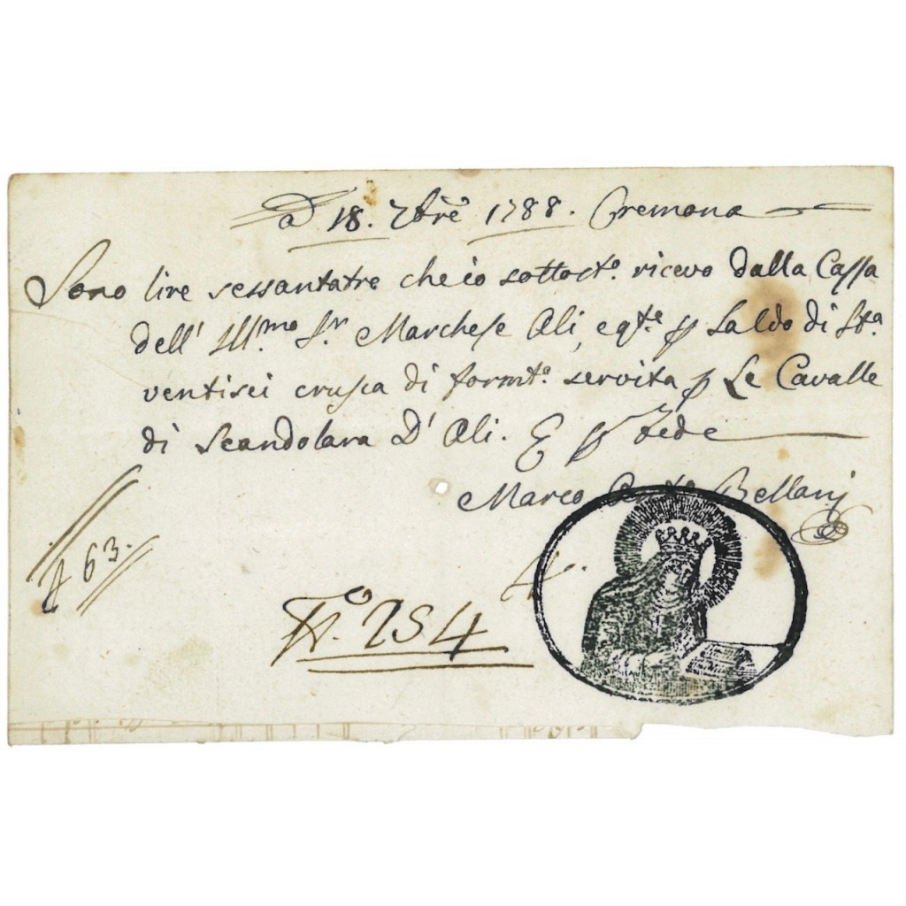 H-45708Fedi di credito cremonesi-8 Cremona 1788Fede di CreditoR4 (251-500 pezzi)S4 (da 101 a 250 €)
