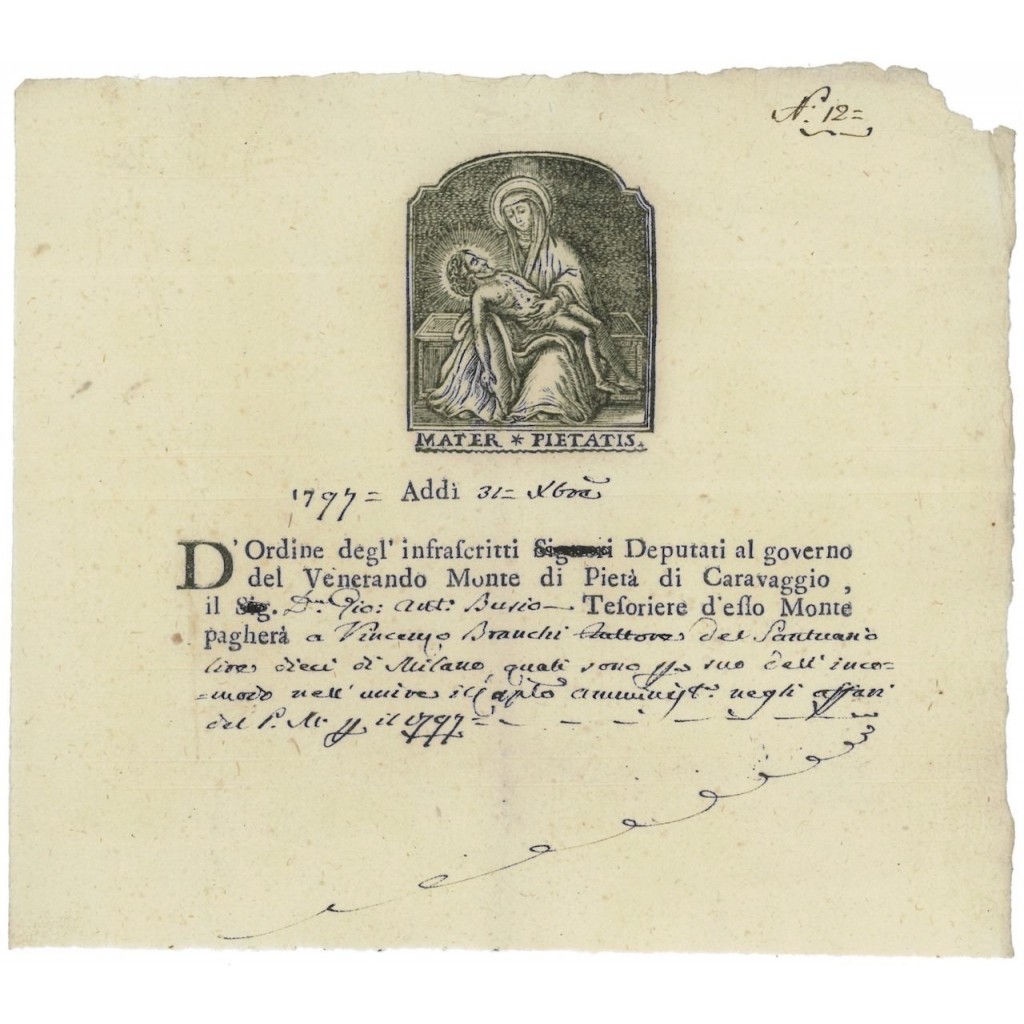 J-45708Fedi di credito cremonesi-10 Caravaggio 1797Fede di CreditoR8 (11-25 pezzi)S5 (da 251 a 500 €)