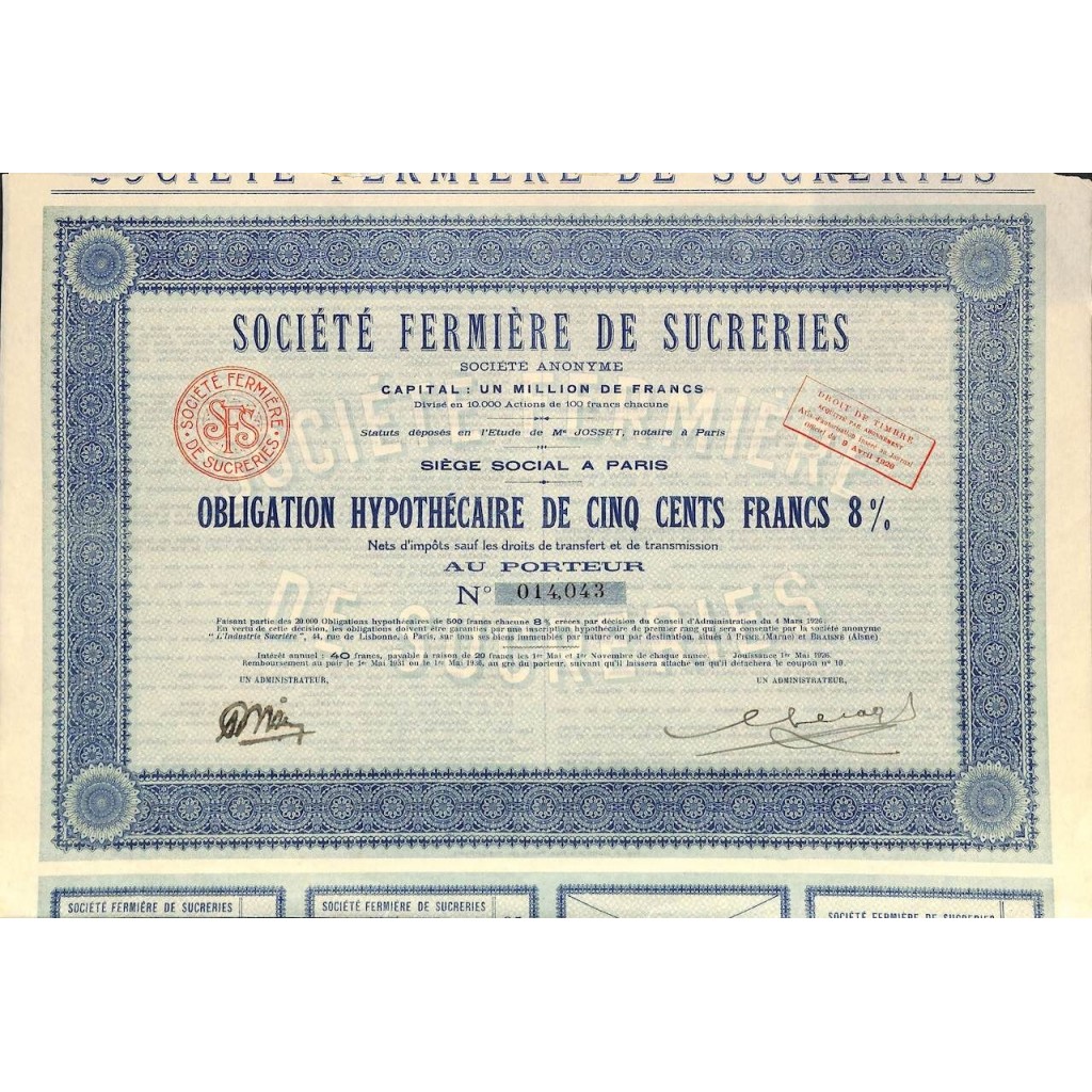 Obbligazione ipotecaria 8% al portatore del valore di 500 Franchi.