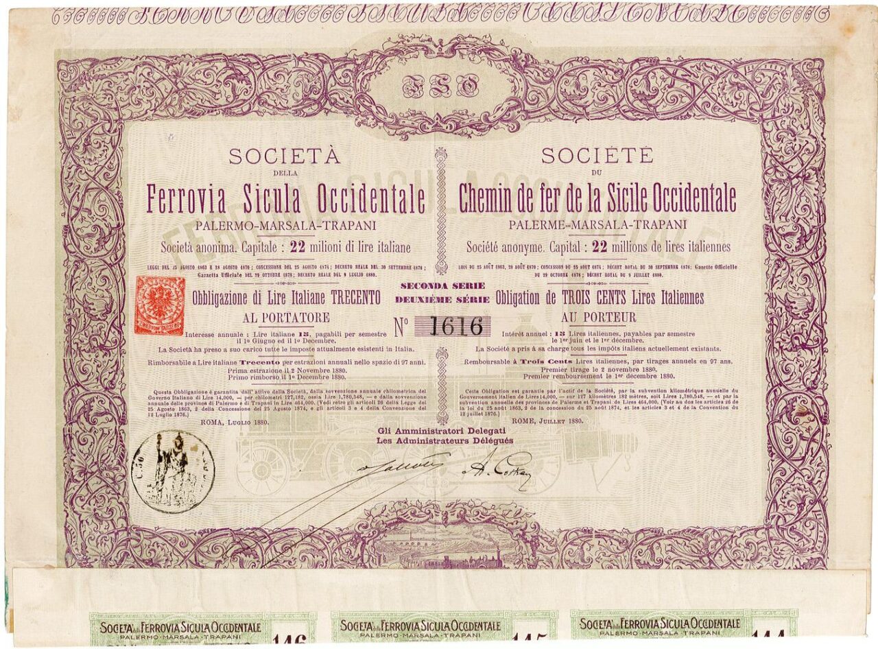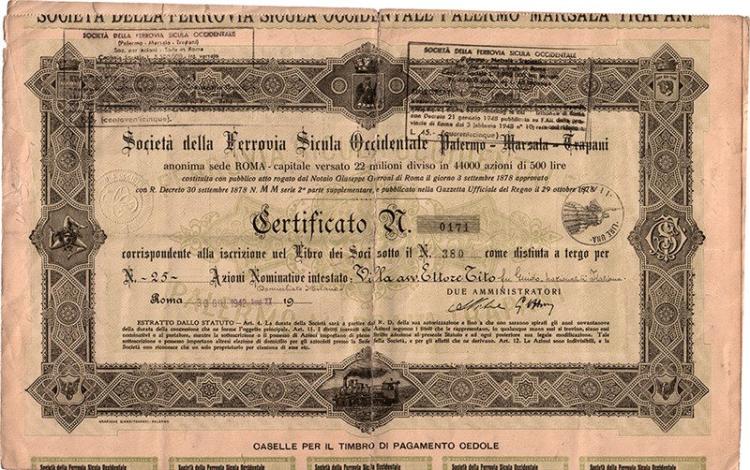 La compagnia, fondata a Roma nel 1878 per collegare le tre città sicule, inaugurò il tratto ferroviario lungo 195 Km circa nel 1881 e lo esercitò fino al 1907, quando fu incorporato nella rete delle Ferrovie dello Stato. Fino al 1885 la linea rappresentava un terzo della rete isolana: il suo tracciato seguiva la costa da Palermo fino ad Alcamo, poi puntava a sud raggiungendo Mazara del Vallo e da qui riprendeva a correre lungo la costa fino a Marsala e Trapani. Lo scopo del collegamento era soprattutto commerciale per trasportare nel capoluogo siciliano il pesce di Mazara del Vallo ed i vini di Marsala