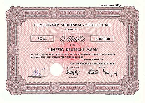 A-66683Flensburger Schiffsbau-Gesellschaft-1Flensburg19711 azione da 50 Marchi--