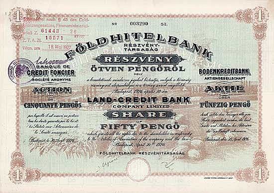 A-69172Földhitelbank-1Budapest19261 azione da 50 Pengö --
