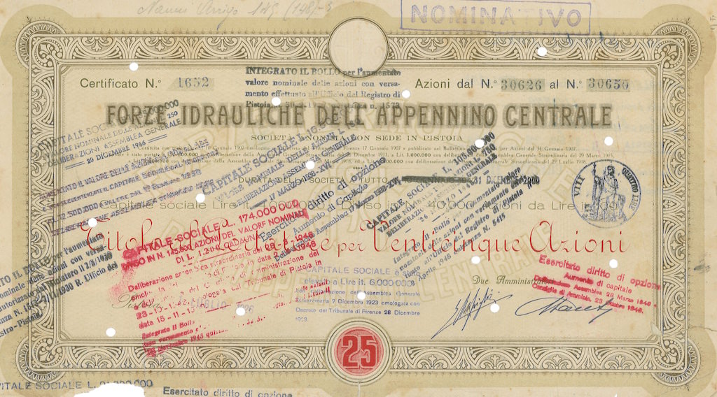 COSTITUITA CON ROGITO QUERCI 10 GENNAIO 1907 OMOLOGATO CON DECRETO TRIBUNALE DI FIRENZE 17 GENNAIO 1907