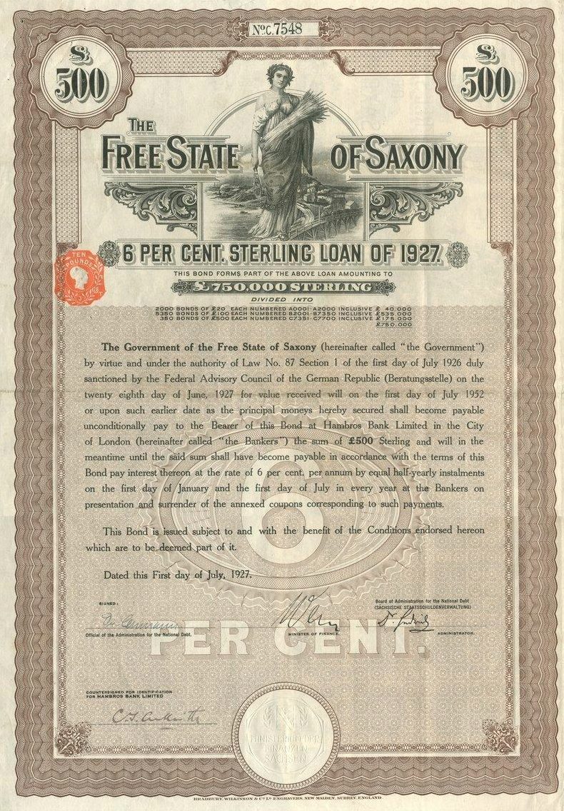 allegorical female with wheatsheaf, ornate border, brown and black, with coupons, NOT cancelled.