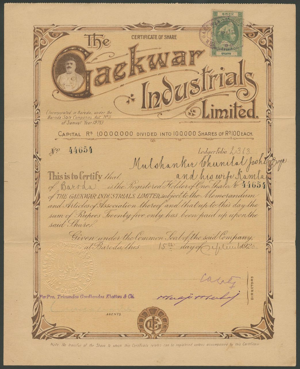 Incorporata a Baroda sotto la legge Act of Samvar 1975 (1918).