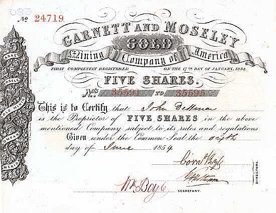 La compagnia di miniere d’oro, fondata nel gennaio 1854, possedeva miniere d’oro in Virginia.