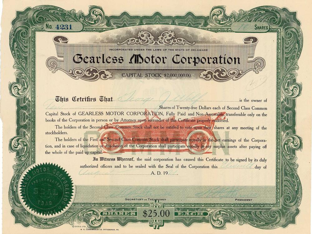 La società, fondata nel 1919, gestiva una fabbrica di automobili a Pittsburgh, in Pennsylvania. Fino al 1923, vennero prodotte macchine a vapore con una frizione a variazione continua, i cui due cilindri trasferirono la loro potenza su una ruota posteriore ciascuna. La società è stata costretta a cessare le attività a causa di una frode da parte dei dipendenti principali.