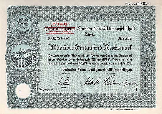 A-66762Gebrüder Heine Tuchhandels-AG-1Lipsia19381 azione da 1.000 Marchi--