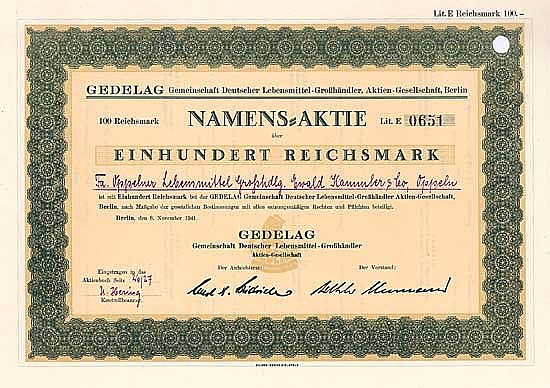 Fondata nel 1923 dai dettaglianti berlinesi come cooperativa di acquisto e produzione per il commercio alimentare. Di nuovo molto attivi dalla riforma valutaria nel 1948, dal 1949 al 1958 furono istituite filiali a Hildesheim, Düsseldorf, Hannover, Göttingen / Braunschweig, Osnabrück, Dortmund e Oldenburg / Brema e un dipartimento di importazione ad Amburgo nel 1950. Dopo la guerra, Gedelag ha svolto un ruolo speciale nella politica di approvvigionamento del Senato di Berlino in seguito alle esperienze del blocco di Berlino. Gedelag ha mantenuto la cosiddetta “Riserva del Senato” nel settore alimentare. Con il ricongiungimento questa attività è divenuta obsoleta, pertanto la cessazione dell’attività operativa nel 1992, è scaduta nel 2006.