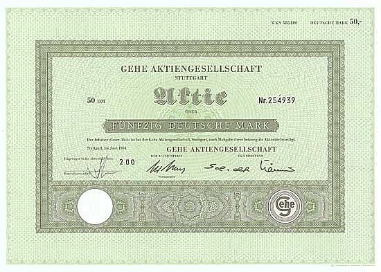 A-66782Gehe AG-1Stoccarda19841 azione da 50 Marchi--