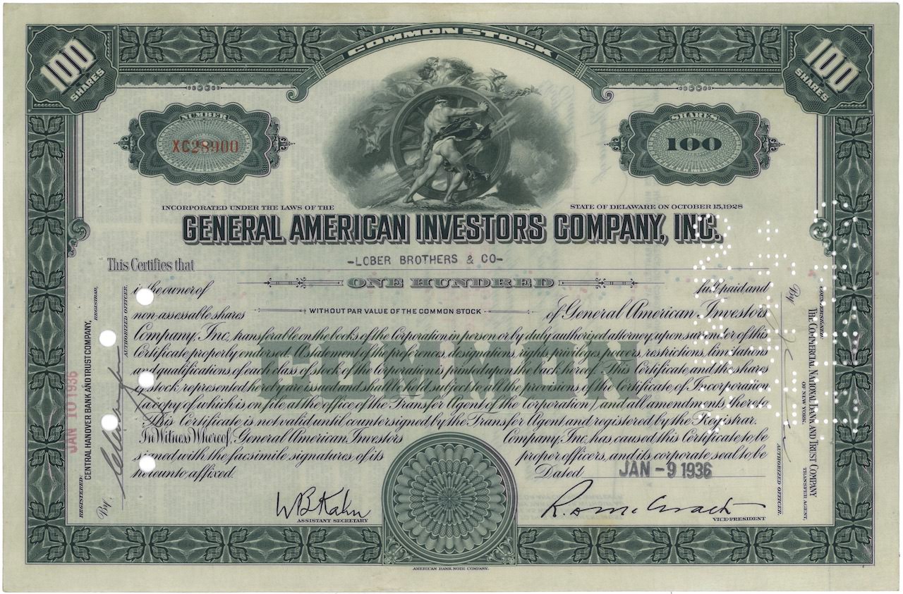 A-18494General American Investors Company, Inc.-1American Bank Note Company - New York1936100 azioniR1 (Più di 5000 pezzi)S1 (da 0 a 25 €)