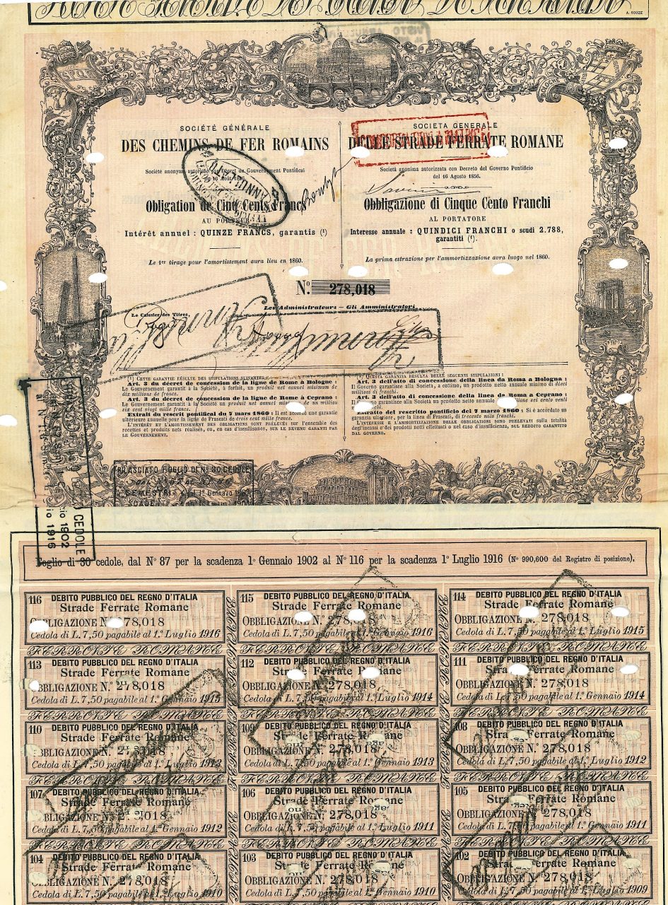 J-1077---Roma18641 obbligazione 5% al portatore da Lire 500R3 (501-1000 pezzi)S3 (da 51 a 100 €)
