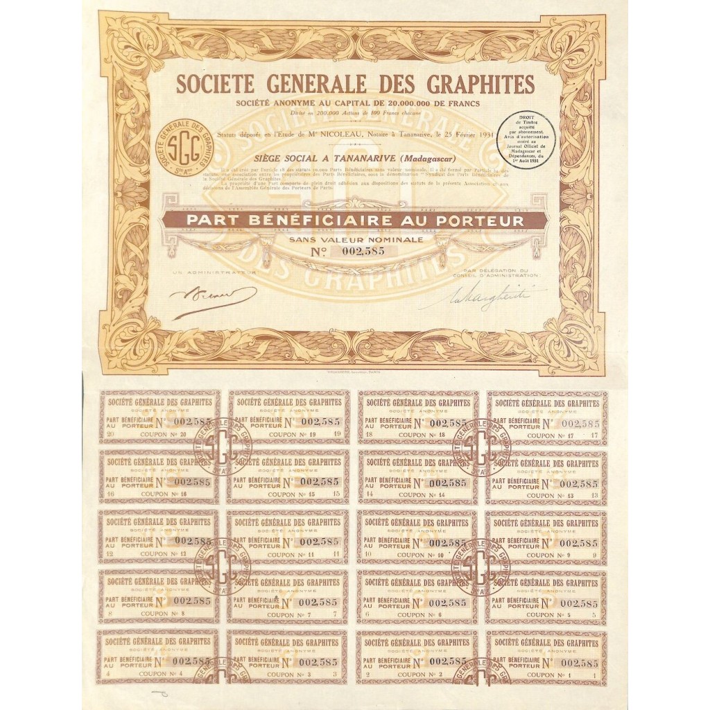 A-51925Generale des graphites soc.-1 Tananarive1931Parte beneficiaria al portatoreR1 (Più di 5000 pezzi)S1 (da 0 a 25 €)