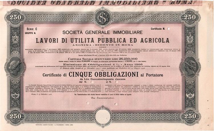 A-45456Generale Immobiliare di Lavori di Utilità Pubblica ed Agricola S.p.A.-1Roma19065 obbligazioni al portatore da 250 LireR2 (1001-5000 pezzi)S2 (da 26 a 50 €)