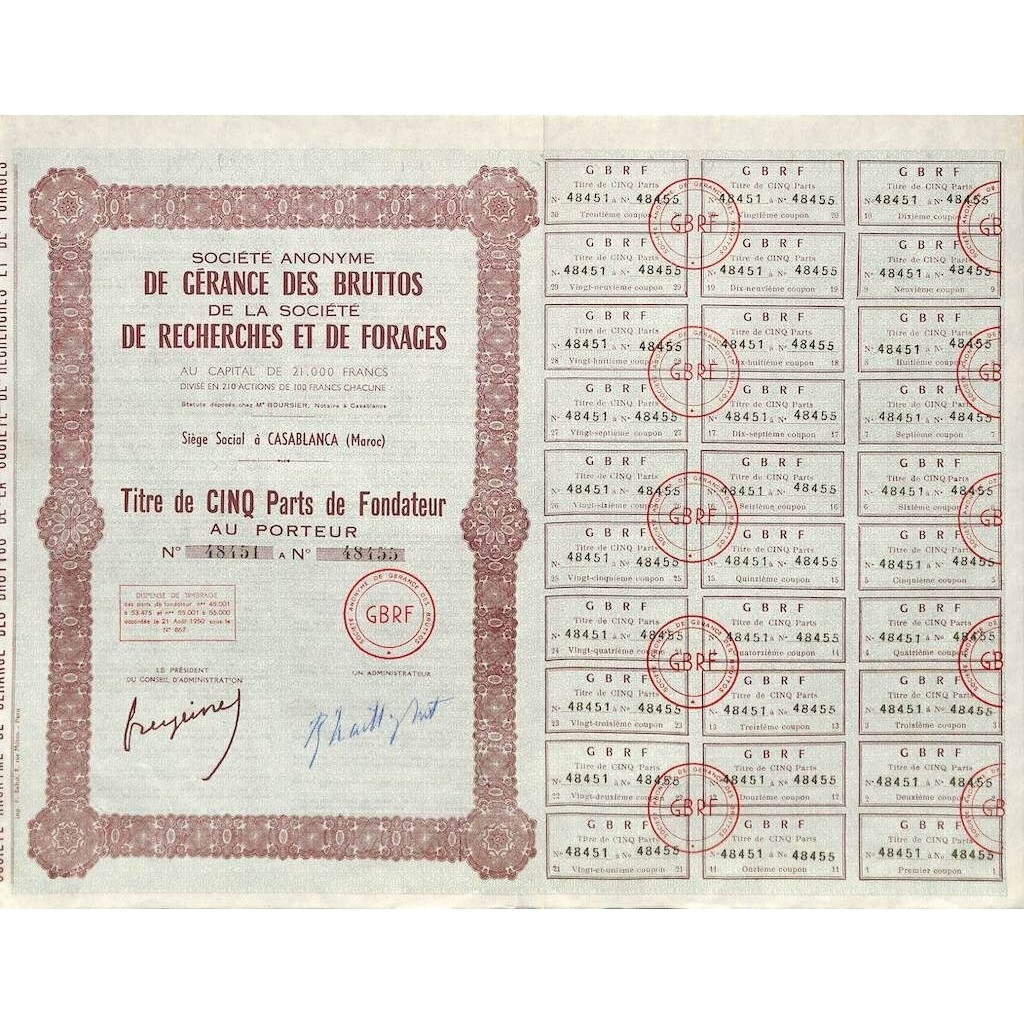 Gerance des bruttos de la soc. De recherches et de forages