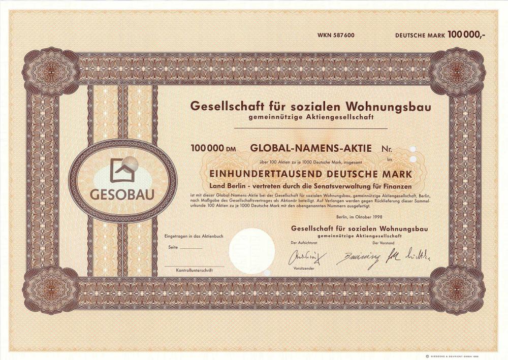 A-65114Gesellschaft für sozialen Wohnungsbau-1Berlino1998100 azioni da 1.000 MarchiR4 (251-500 pezzi)S4 (da 101 a 250 €)