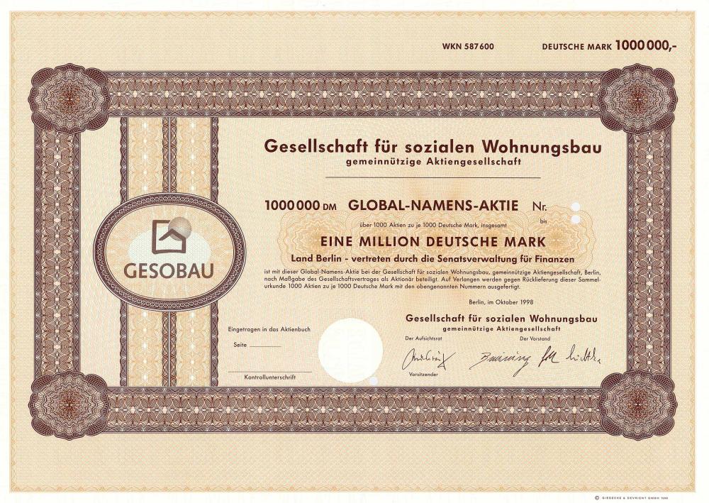 A-65114Gesellschaft für sozialen Wohnungsbau-1Berlino1998100 azioni da 1.000 MarchiR4 (251-500 pezzi)S4 (da 101 a 250 €)