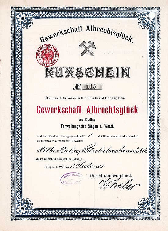 Sede del sindacato a Gotha (allo scopo di sfruttare la legge liberale mineraria della Sassonia-Weimar), amministrazione a Siegen.