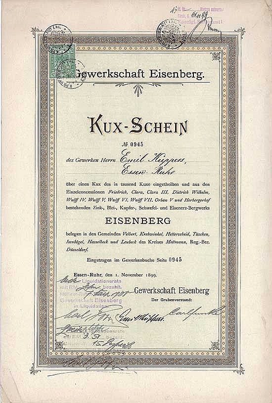 Miniere di zinco, piombo, rame, zolfo e ferro nei comuni di Velbert, Krehwinkel, Hetterscheid, Tüschen, Isenbögel, Hasselbeck e Leubeck (distretto di Mettmann) nel distretto amministrativo di Düsseldorf. In liquidazione dal 1938.