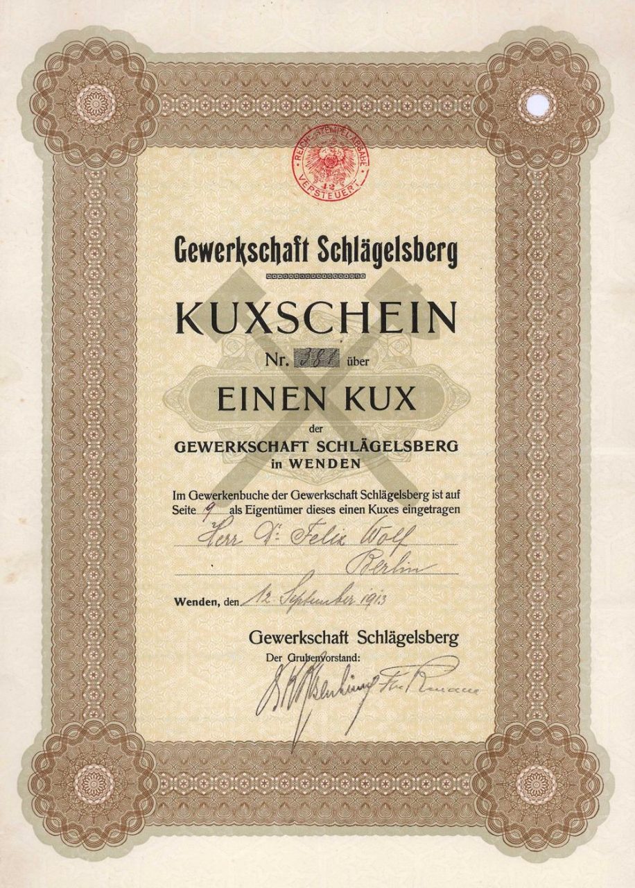Fondata per espandere la galleria Burmeister a Wenden, distretto di Hünsborg (nella regione del Sauerland al confine con Siegerland). Dopo che i corrispondenti granelli di platino erano presenti nel minerale, si sperava che il platino potesse essere estratto in larga misura. Il tunnel ha una lunghezza di circa 300 m e presenta numerosi passaggi a croce. Questa fondazione caratterizza il rinnovato tentativo di rilanciare l’estrazione mineraria che è stata in gran parte inattiva dalla fine del 18 ° secolo, anche se con successo negativo.