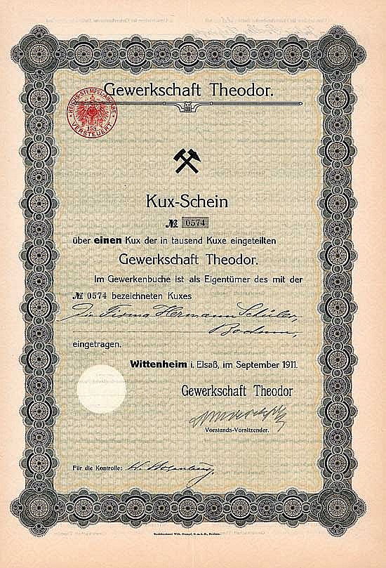La fossa dell'unione di cloruro di potassio fu fondata nell'ottobre dell'anno 1911 dalla società Haniel & Lueg. La maggioranza azionaria era detenuta dal sindacato Wintershall con il 50,1%, un altro 33,4% era detenuto dalle autorità fiscali dell'Alsazia-Lorena.