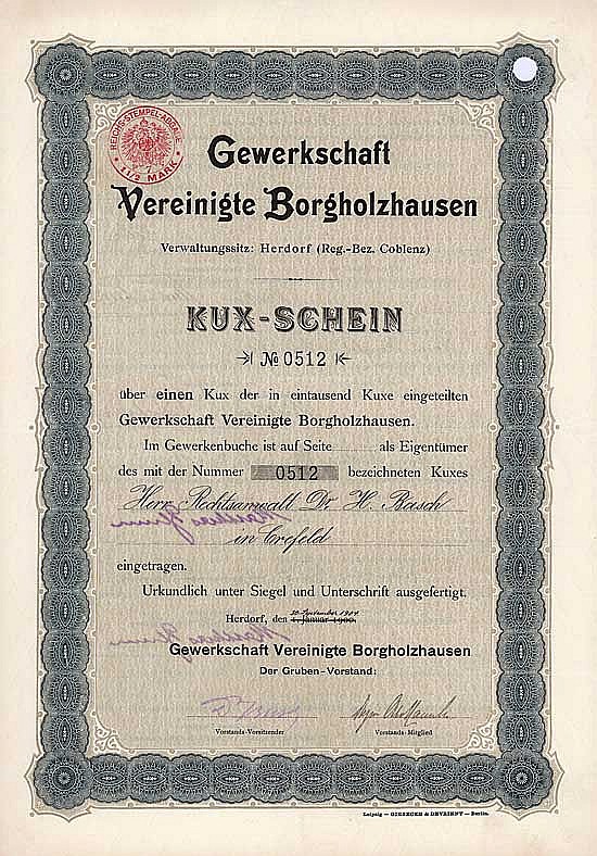 A-66891Gewerkschaft Vereinigte Borgholzhausen-1Herdorf1904Certificato azionario--