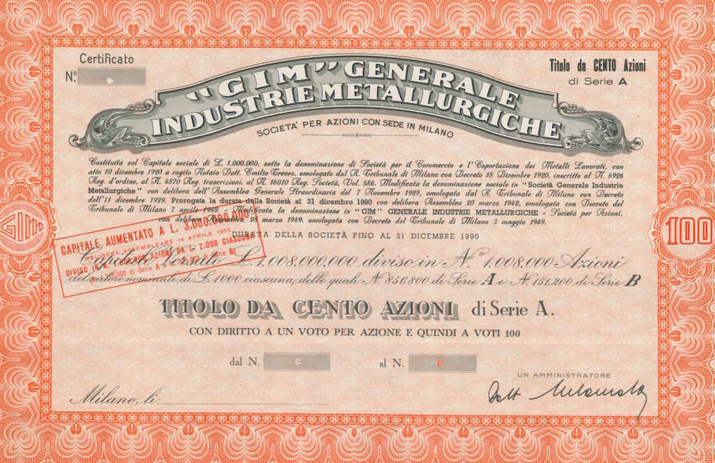 Fondata nel 1920 come Società per il Commercio e l’Esportazione dei Metalli Lavorati, nel 1929 cambiò ragione sociale in Società Generale Industrie Metallurgiche e nel 1949 in “GIM”.