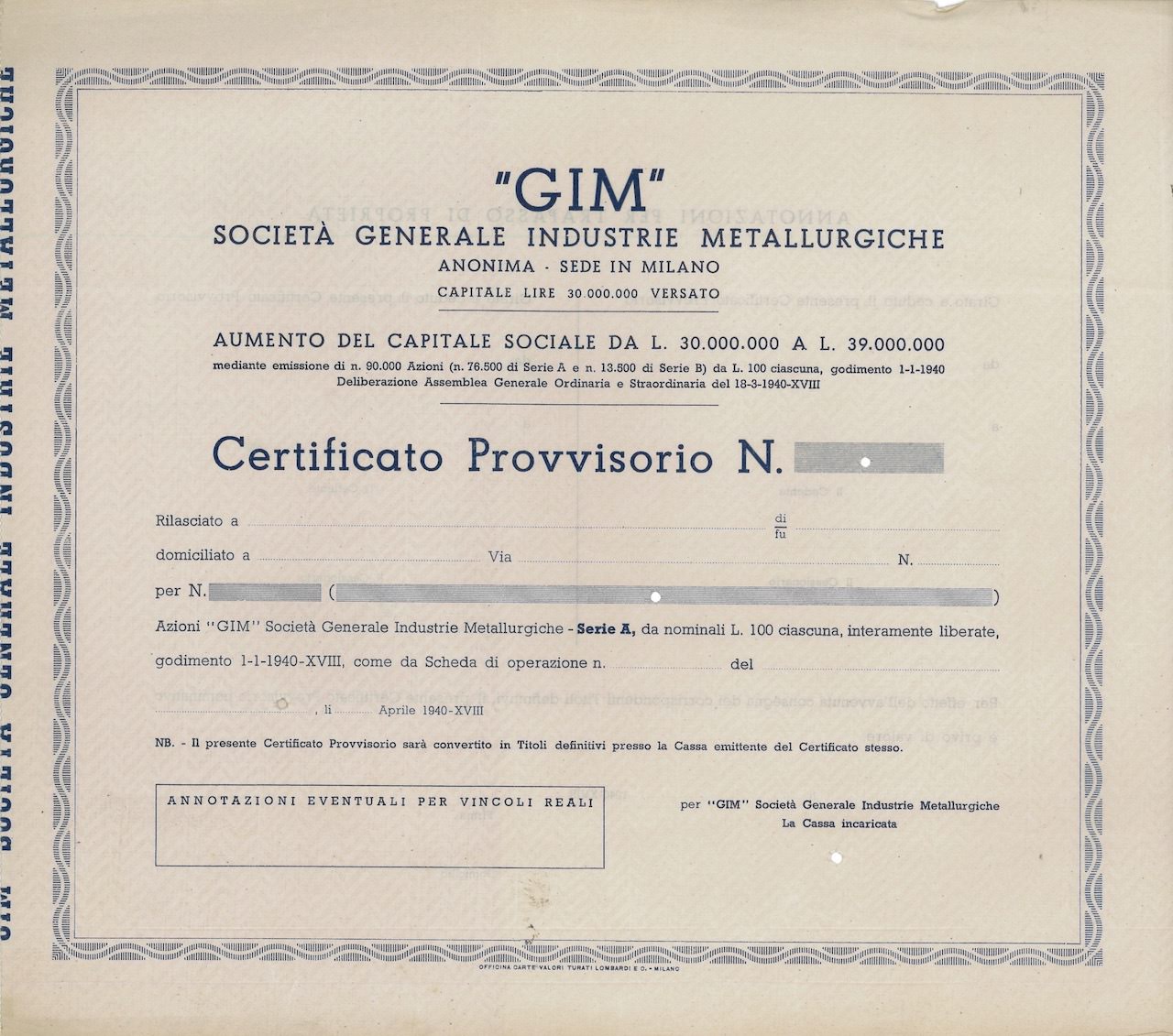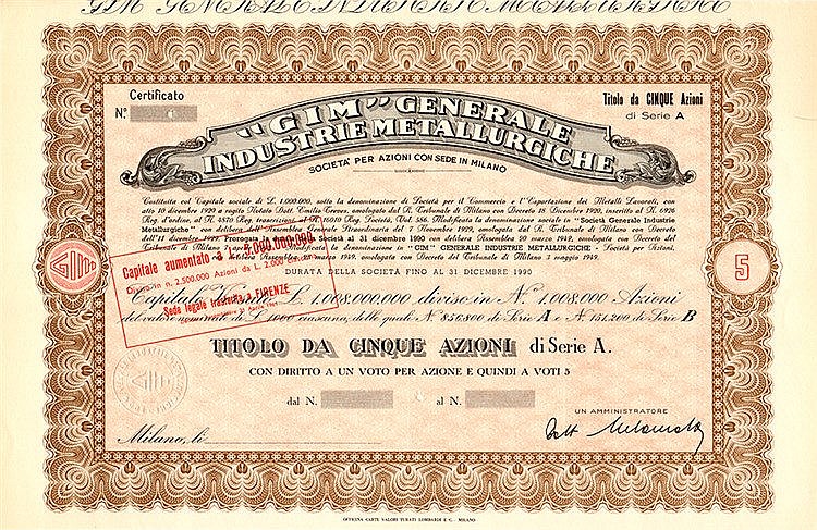 Fondata nel 1920 come Società per il Commercio e l’Esportazione dei Metalli Lavorati, nel 1929 cambiò ragione sociale in Società Generale Industrie Metallurgiche e nel 1949 in “GIM”.