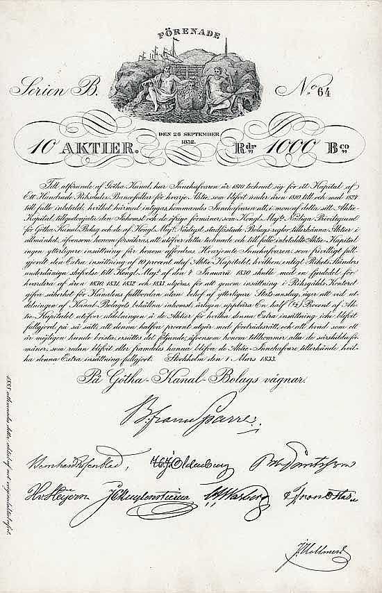 Già nel XVI secolo si prevedeva di costruire un canale tra il lago Vänern e il Mar Baltico. Tuttavia, la costruzione iniziò molto più tardi sotto il re Carlo XII. L’azienda nasce grazie agli instancabili sforzi del ministro Baltzar Bogislaus von Platen (1766-1829). Von Platen assunse il costruttore di fognature Daniel Thunberg e lo specialista britannico Thomas Telford (1757-1834). Telford è oggi considerato il primo ingegnere civile moderno, il fondatore della costruzione utilizzando metodi scientifici. I lavori sul canale di Motala iniziarono nell’anno in cui fu fondata, la parte occidentale e nel 1832 la parte orientale del canale di Götha fu completata nel 1822. 87 km dei 191 km di canali (con 387 km di laghi) sono stati creati artificialmente. Furono costruite 58 serrature manuali. Nell’ottobre 1834, il piroscafo “Admiral von Platen” fu il primo transatlantico a salpare da Stoccolma a Göteborg. La rotta fluviale interna svedese, un tempo più importante, è ancora oggi una grande attrazione turistica.