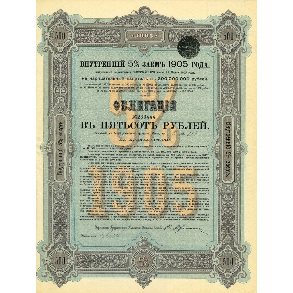 Gouvernement imperial de russie – emprunt interieur 5% de 1905