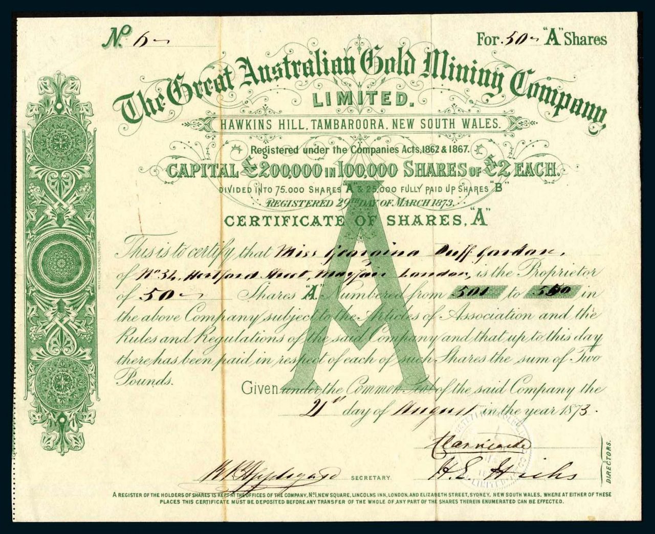 Capitale £ 200.000 in azioni di £ 2. 75.000 azioni "A" e 25.000 azioni "B"