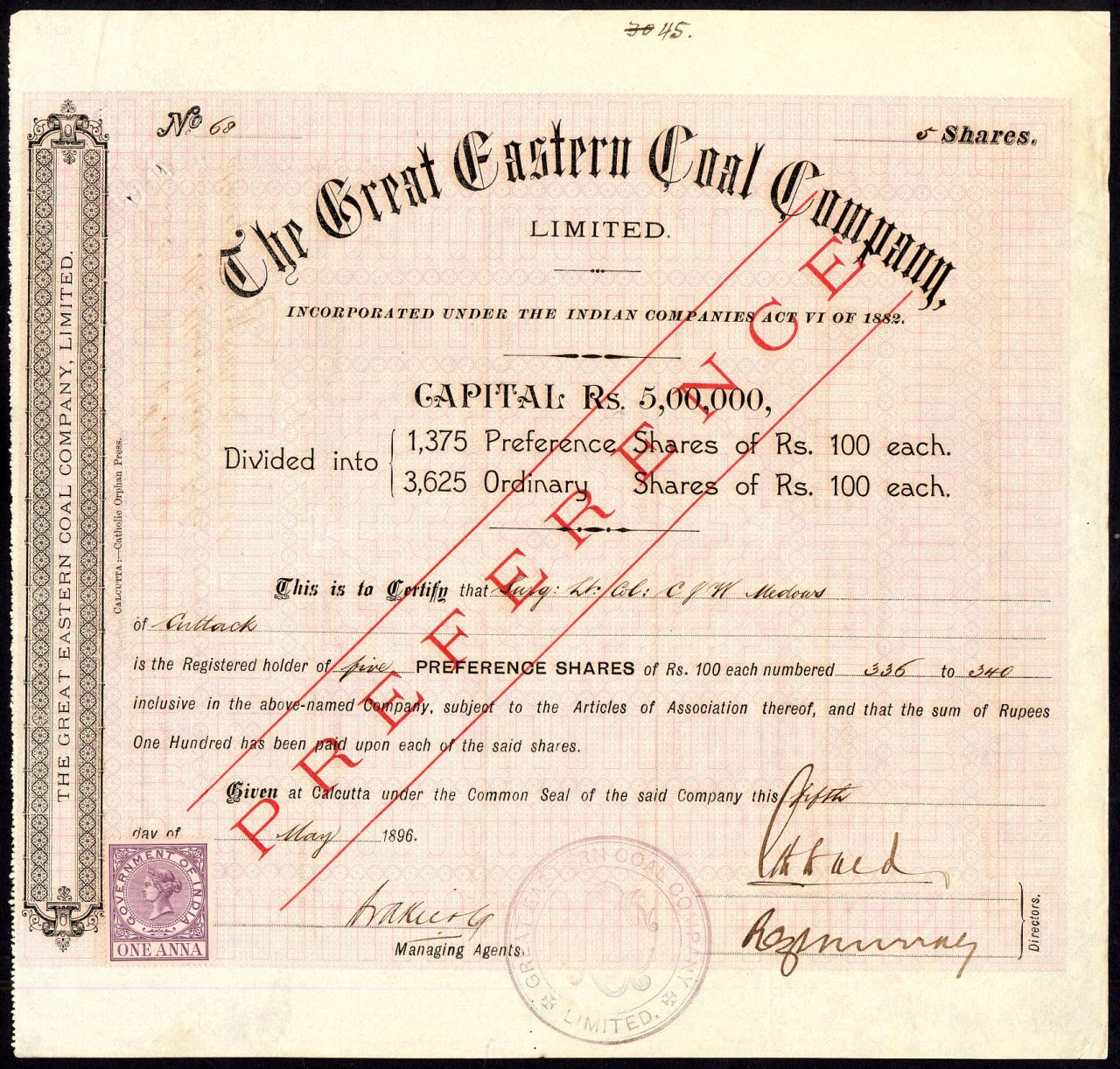 Costituito ai sensi dell’Indian Companies Acts del 1882. Capitale 5.000.000 di rupie in 3.625 azioni ordinarie e 1.375 azioni privilegiate di 10 rupie.