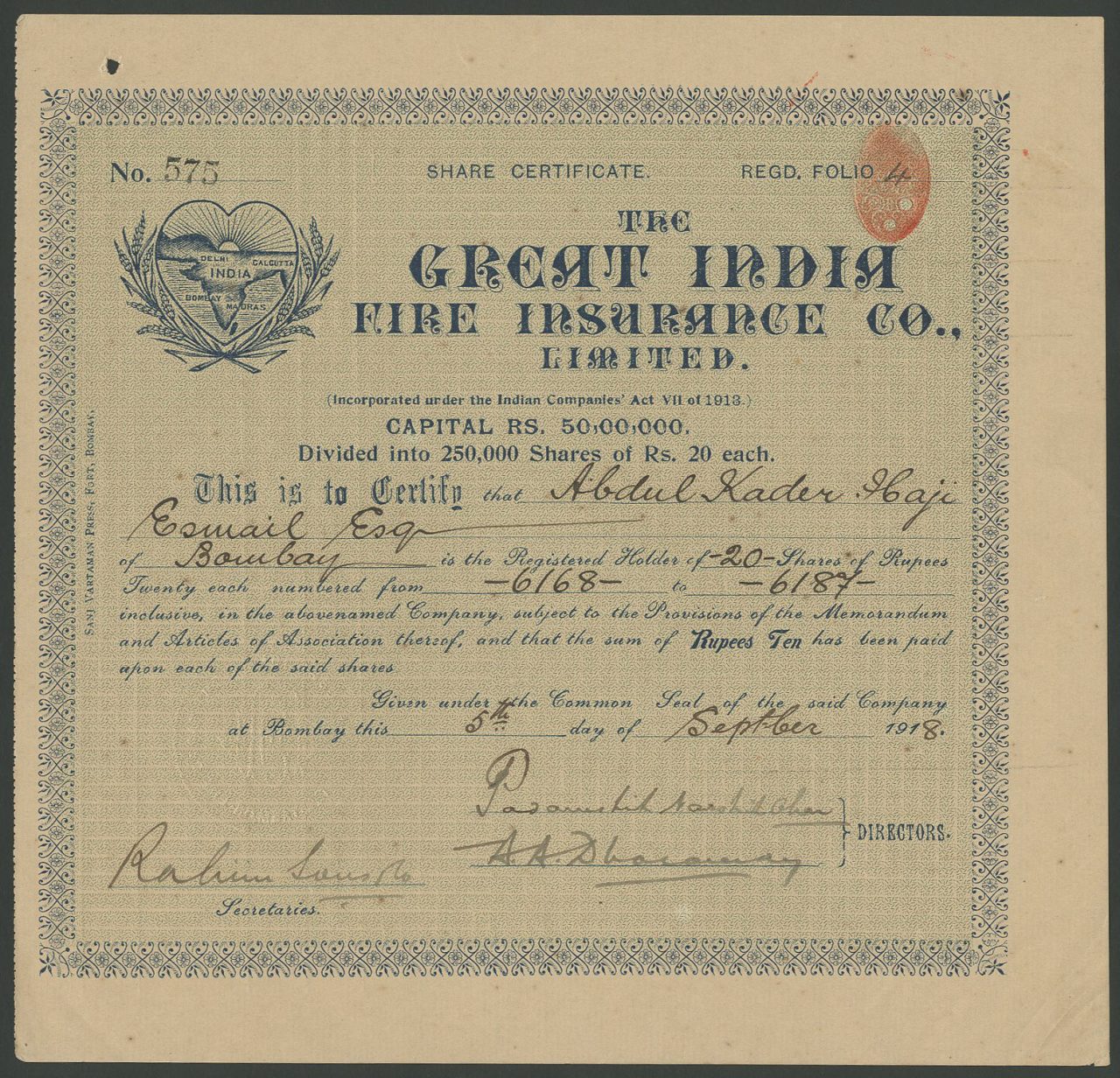 Incorporato ai sensi dell’Indian Companies Act del 1913. Capitale 50,00.000 rupie in azioni di 20 rupie