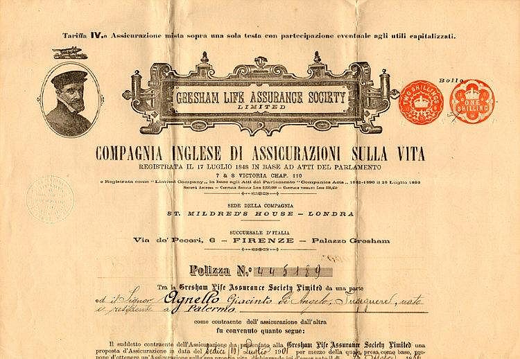 Sede della compagnia a Londra, succursale in Italia a Firenze presso Palazzo Gresham. Effige del fondatore, il banchiere inglese del Cinquecento Sir Thomas Gresham.