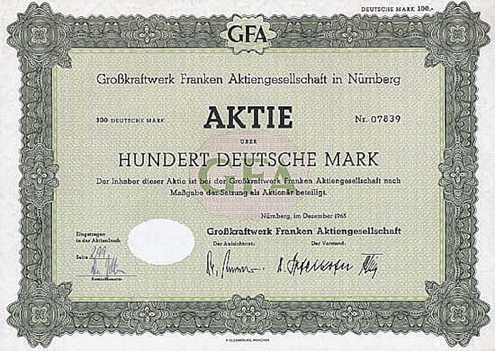 A-66956Grosskraftwerk Franken AG-1Norimberga19631 azione da 100 Marchi--