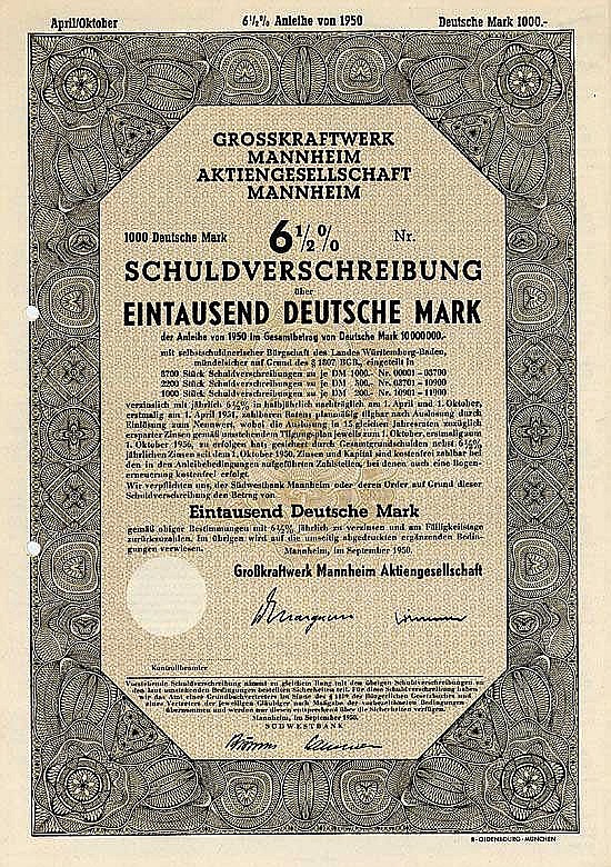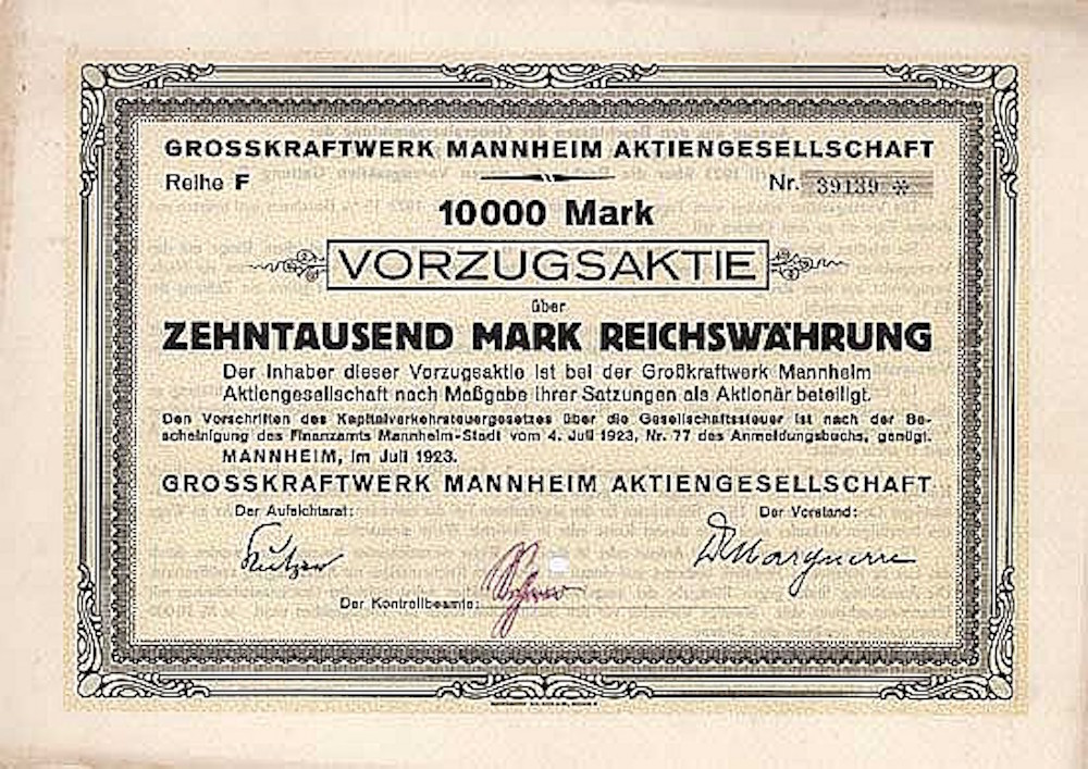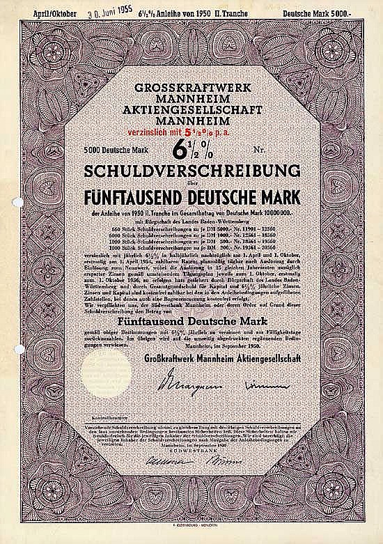 Fondata nel 1921 dalla città di Mannheim, la Pfalzwerke, la Badenwerk, la Neckar AG e la Rhein-Haardt-Bahngesellschaft. Gestione di una grande centrale elettrica e consegna di energia elettrica ai principali azionisti al costo. Dal 1954, con la messa in esercizio dell’impianto II, 600 m a valle dell’impianto principale, è stata fornita energia elettrica anche alla Deutsche Bundesbahn. Altre centrali termoelettriche furono messe in funzione negli anni ’70 e ’80. RWE Power AG è un nuovo importante azionista dal 2002.