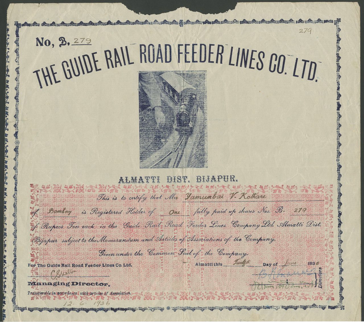 A-41541Guide Rail Road Feeder Lines Co. Ltd.-1Princely States193610 rupee sharesR2 (1001-5000 pezzi)S2 (da 26 a 50 €)